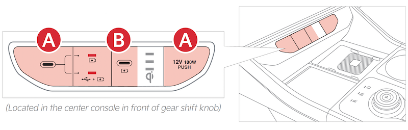 AC Inverter: 115V/100 watt power inverters are located in the back of the center console and in the luggage zone.