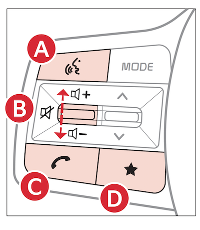 Kia Connect with Navigation – When enrolled with a Kia Connect subscription, press this button to activate the Kia Connect Voice Assist to use navigation guidance and search destinations