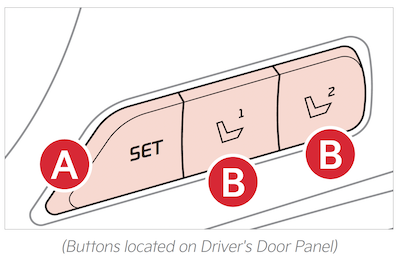 To store positions into memory, first place the gear shift into P (Park) while the ENGINE START/STOP button is in the ON position. Then: