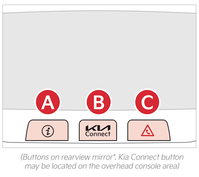 For more information, refer to the Car Infotainment System Quick Reference Guide. On certain models, Kia Connect Assistance buttons are located on the Rearview Mirror.