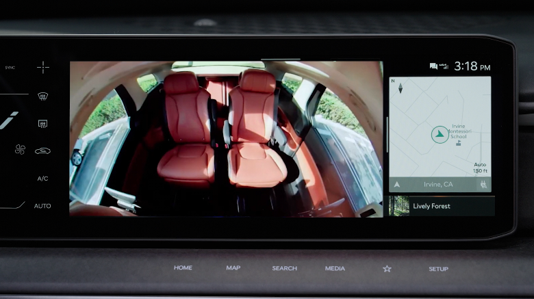 Passenger View, an in-cabin camera, helps the front passenger talk with rear passengers while viewing them on the audio head unit screen.