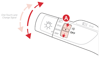 One-Touch Lane Change Signal is activated by briefly pressing the Turn Signal Lever slightly for less than 1 second and then releasing. The lane change signal will blink 3 times.