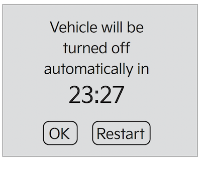 The Vehicle Auto Shut-Off, when certain conditions are met, will turn the vehicle off automatically after 60 minutes. A timer appears on the Instrument Cluster approximately 30 minutes before it turns off automatically.