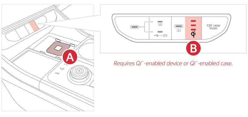 Charge a compatible Qi™ Certified smartphone wirelessly by placing it on the charging pad