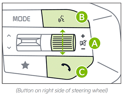 Call / End button: Press to receive/place/end calls. In vehicles with navigation, if no phone is paired, press button to pair a phone