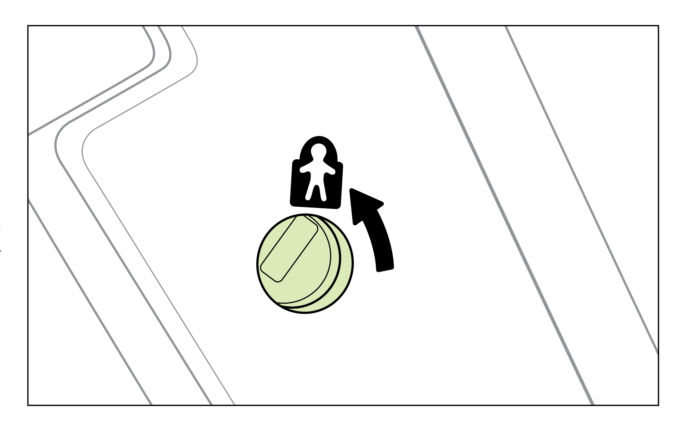 Locate these locks on the rear edge of the rear passenger doors. Move the Child-Protector Rear Door Lock, with the mechanical ignition key, to the lock position (shown) to disable the inner door handles from opening the rear doors.