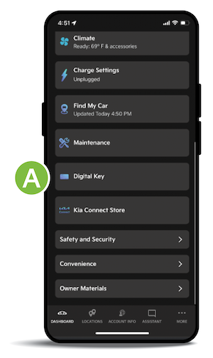 When in the wallet app, click on the Digital Key and select the menu icon to adjust other settings or use other features