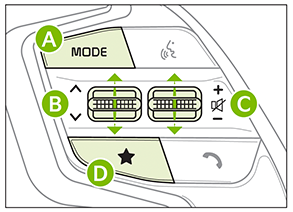 Audio MODE button: Press to cycle through FM/AM/SiriusXM®/Media modes