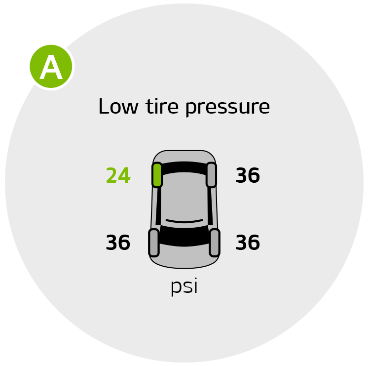 showing which tire(s) is underinflated. Inflate the tire(s) to specifications using an accurate digital tire pressure gauge to turn off Low Tire Pressure Light