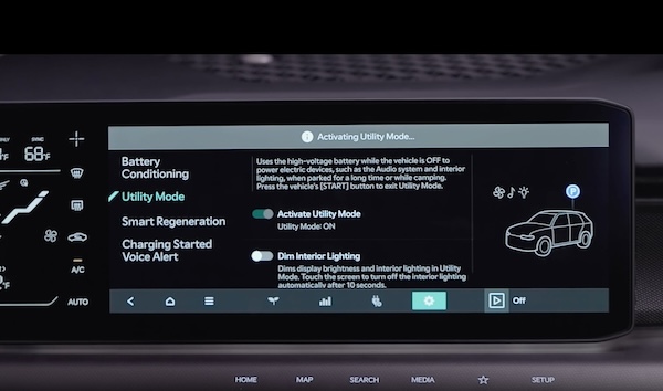 Interior Port - The EV Power button needs to be on to operate the port. Use the Smart Key fob mechanical key to unlock the power outlet cover. Check the indicators on the port to ensure power is on.
