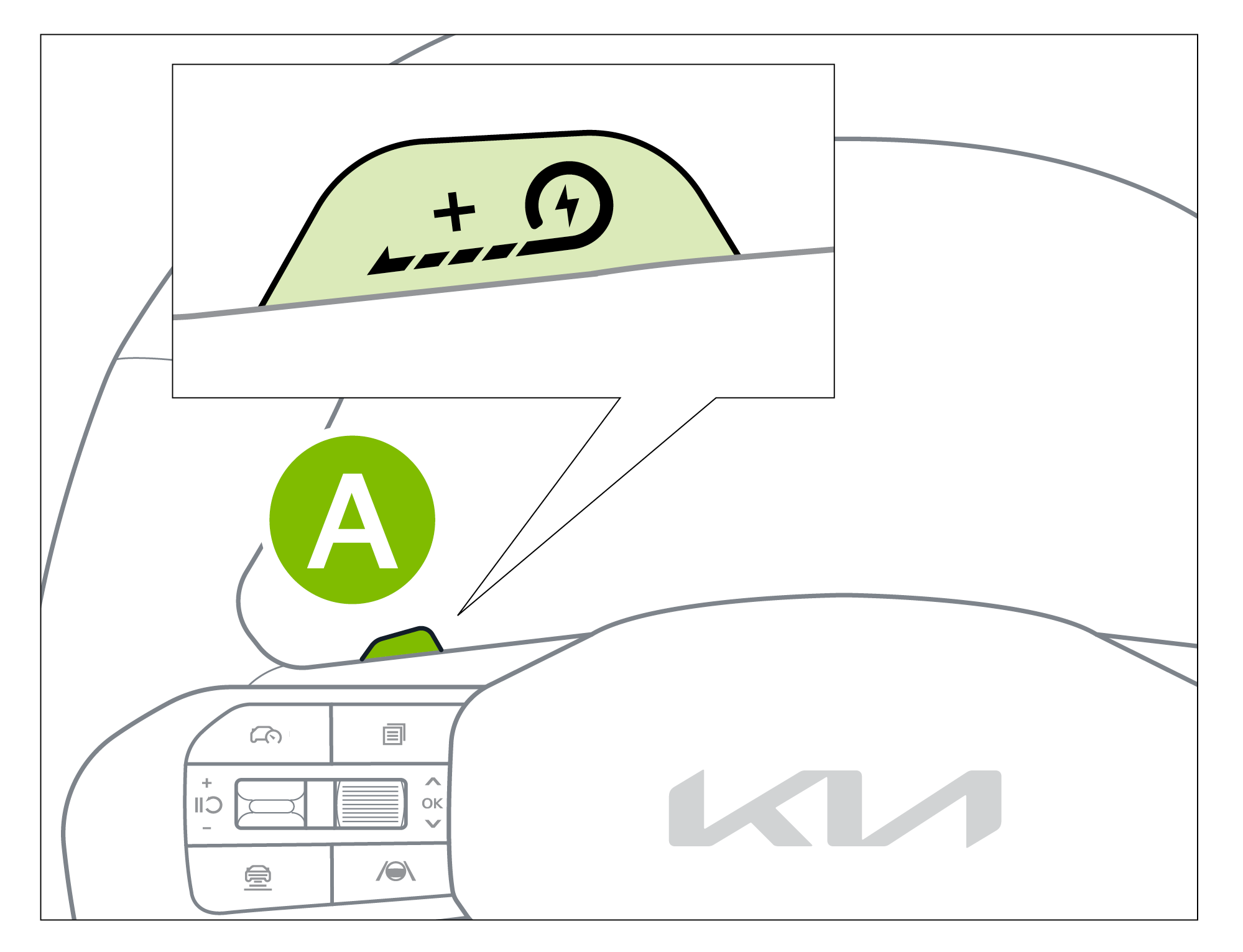 The regenerative braking system charges the battery when coasting or when you use the brakes to stop the vehicle. Use the paddle switches to adjust the regenerative braking level from 0 to 3 during decelerating or braking. The level will be displayed on the Instrument Cluster