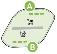 Ventilated Seats — Press the bottom of the button once for high setting (3 blue LEDs lit), again for middle setting (2 blue LEDs lit), again for low setting (1 blue LED lit). Press again to turn OFF.