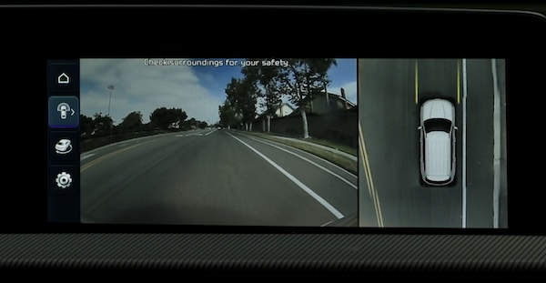 Surround View Monitor uses the wide view cameras and displays images around the vehicle through the Infotainment System screen to assist with parking.