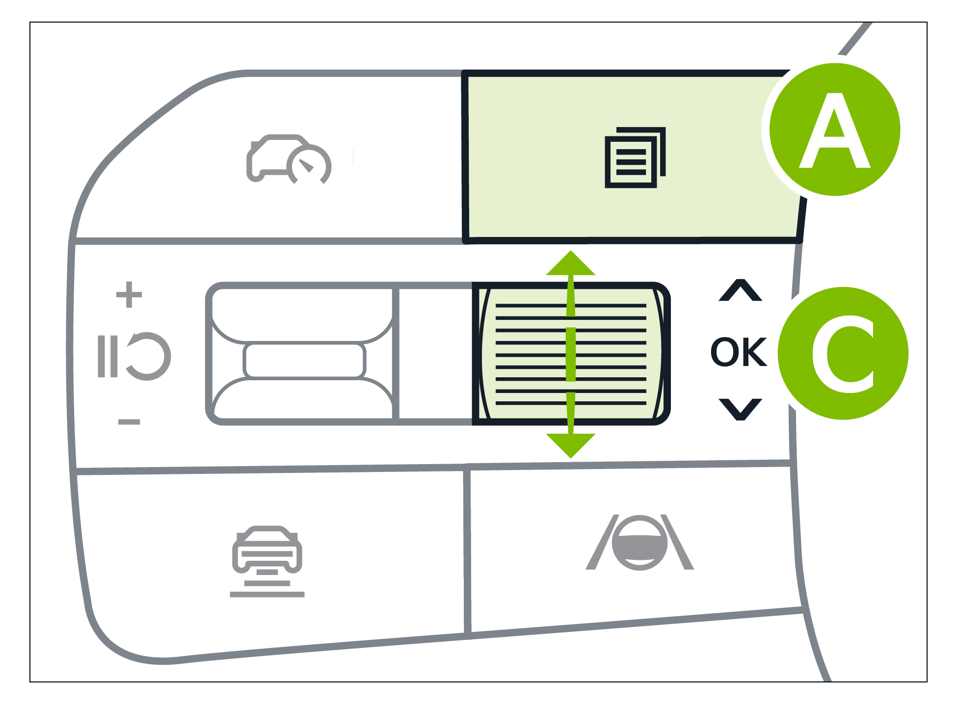 Button configuration may vary. Images are for illustrative purposes only and may not reflect actual feature or operation. For more information, refer to section 5 in the Owner’s Manual.