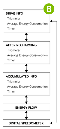 The Trip Computer is a driver information system that displays information related to driving, such as average and instant energy consumption, drive info, driving style and energy flow*.