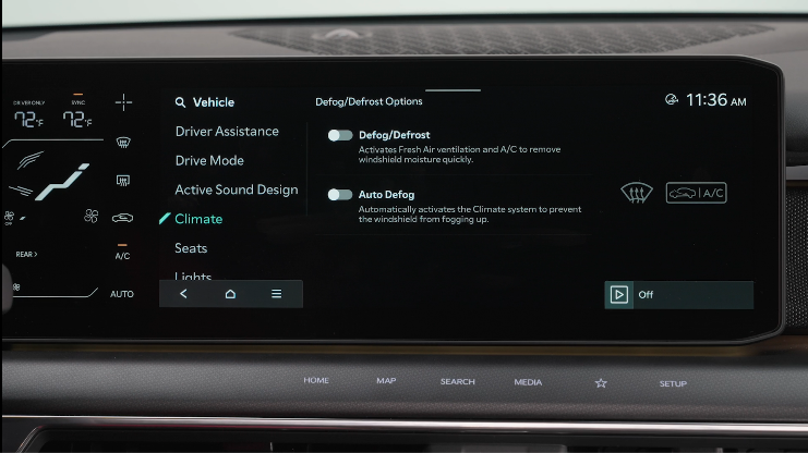 Auto Defogging is set ON by default and will operate when the Climate Control system is ON. To cancel Auto Defogging, press the Front Defrost button for three seconds when the ignition is on (ADS OFF icon will illuminate). To turn Auto Defogging on again, press the Front Defrost