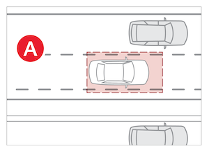 When you are driving forward out of a parking space, if BCA determines that there’s a collision risk with an approaching vehicle in the blind spot, it can help avoid collision by applying the brake.