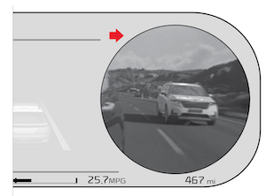 Blind-spot View Monitor (BVM) displays the rear blind spot area of the vehicle in the cluster when the turn signal is turned on to help safely change lanes.