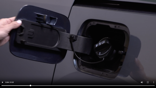 To open the Fuel Filler Door, turn off the engine and ensure driver’s door is unlocked. Press on the right center edge