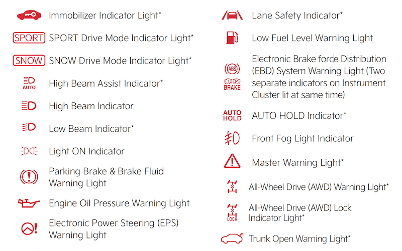 This illustration is for demonstration purposes only. Some indicators and warning lights may not appear in the illustration. On the vehicle, they may appear in the LCD. Your vehicle’s instrument cluster & indicator light locations may differ from those in the illustrations.
