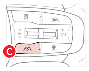To turn LFA on or off, press the Lane Driving Assist button