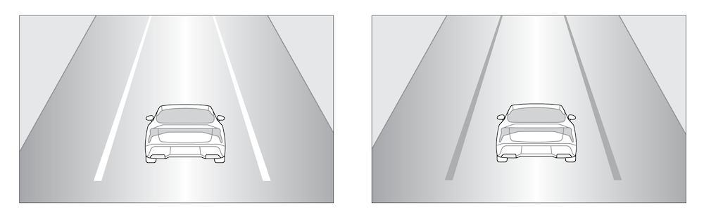 When LKA detects the lane markers, both lanes are displayed white, shown below.When LKA does not detect the lane markers, the lanes are displayed gray, both shown below.