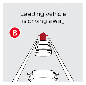 Leading Vehicle Departure Alert (LVDA), a part of DAW, is designed to inform the driver when the vehicle in front starts moving or departs from a stop. If the vehicle is stopped and Leading Vehicle Departure Alert (LVDA) is enabled, when a detected vehicle in front starts to depart, LVDA is designed to inform the driver by sounding an alert and displaying a message