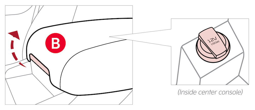 Power Outlet: Use the power outlets for mobile phones and other devices designed to operate on a 12V (180W max) power outlet