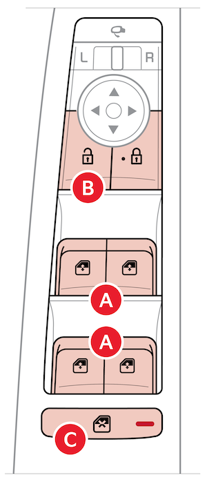 Press to disable Rear Passenger Windows / activate Electronic Child Safety Lock System