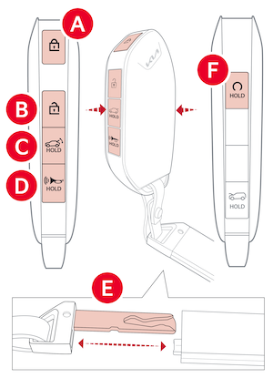 Remote button configuration may vary depending on vehicle options. For more information on the Mechanical Key, please refer to section 4 in the Owner’s Manual.