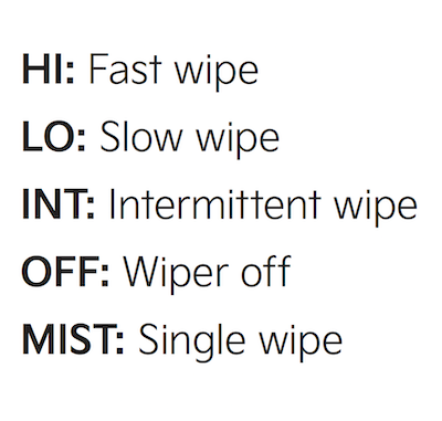 Up/Down to adjust Intermittent Wipe Speed to Fast/Slow