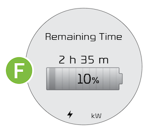 The charging status can be checked by viewing the charging status indicator on the dash panel. The lights will progressively become lit as the vehicle approaches a full charge. After charging has started, the light turns green and the estimated charging time is displayed on the Instrument Cluster