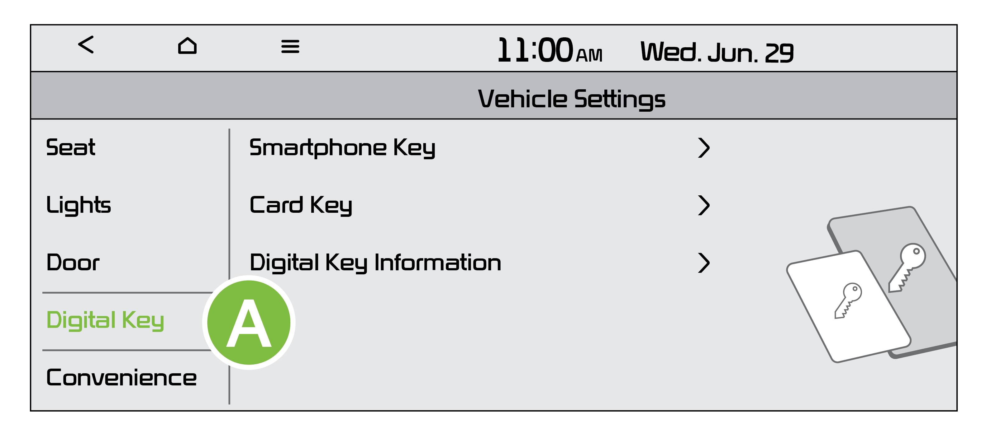 Digital Key 2 Touch is currently only compatible with Apple iPhone & iWatch® and Samsung™ smartphones. Your iPhone® Wallet or Samsung™ Wallet app content may vary as the apps are updated. The actual steps for Digital Key 2 Touch setup, usage and sharing may change. During the Digital Key saving process, the process will cancel when: