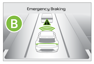 may help avoid a possible collision with a vehicle, pedestrian or cyclist detected ahead in the same lane. When a risk of collision is detected, Evasive Steering Assist function will warn the driver and if the driver steers to avoid collision it may assist the driver’s steering.