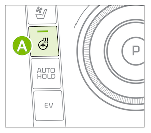to turn ON/OFF the steering wheel heater, while the POWER button is in the ON or READY position. The steering wheel heater will turn off automatically after 30 minutes, or when button is pressed again to deactivate.