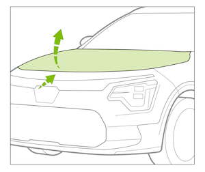 to unlatch the Hood. In the front of the vehicle, lift the Hood slightly, pull the secondary Latch