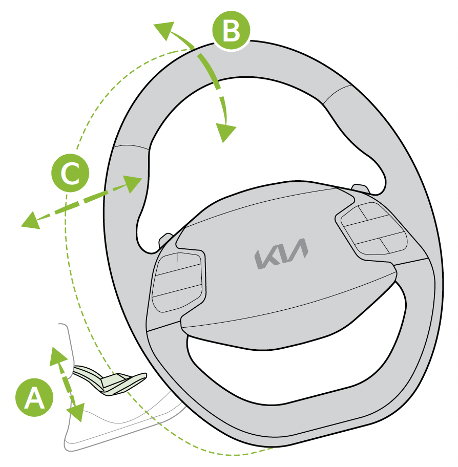 Do not attempt to adjust the steering wheel position when the vehicle is in motion as this may cause to lose control of the vehicle.