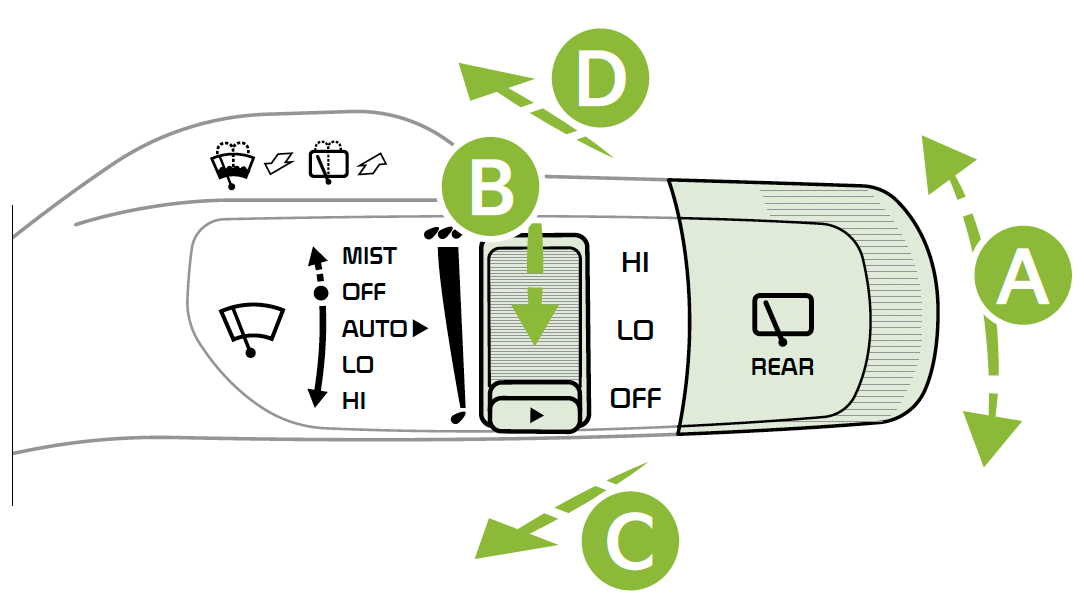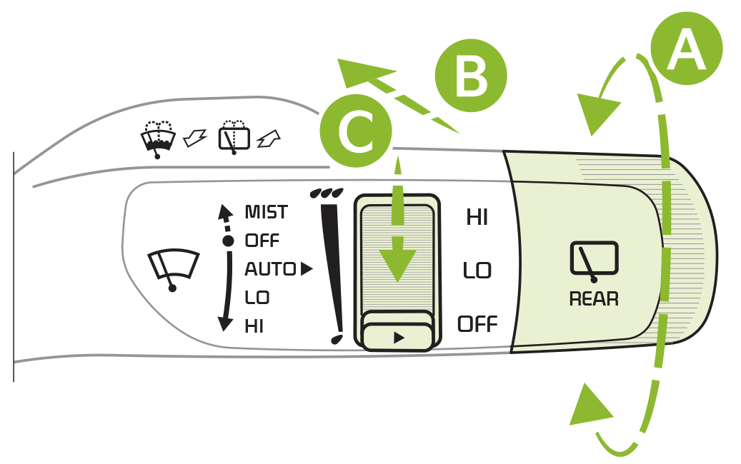 LO - Intermittent / HI - Continuous to change Wiper modes