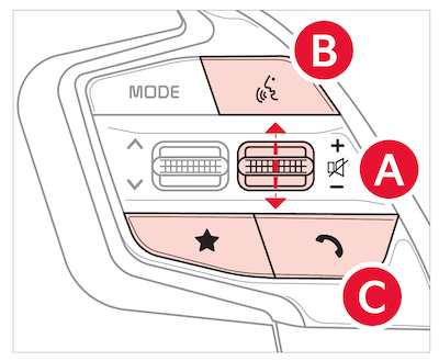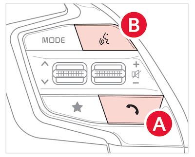 Voice Recognition button: Press to activate voice recognition/bring up menus/place calls with minimal voice command prompts from the system. Press and hold to exit voice recognition; press and hold to start voice recognition of a connected smartphone via phone projection (Button operation may vary depending on smartphone specifications)