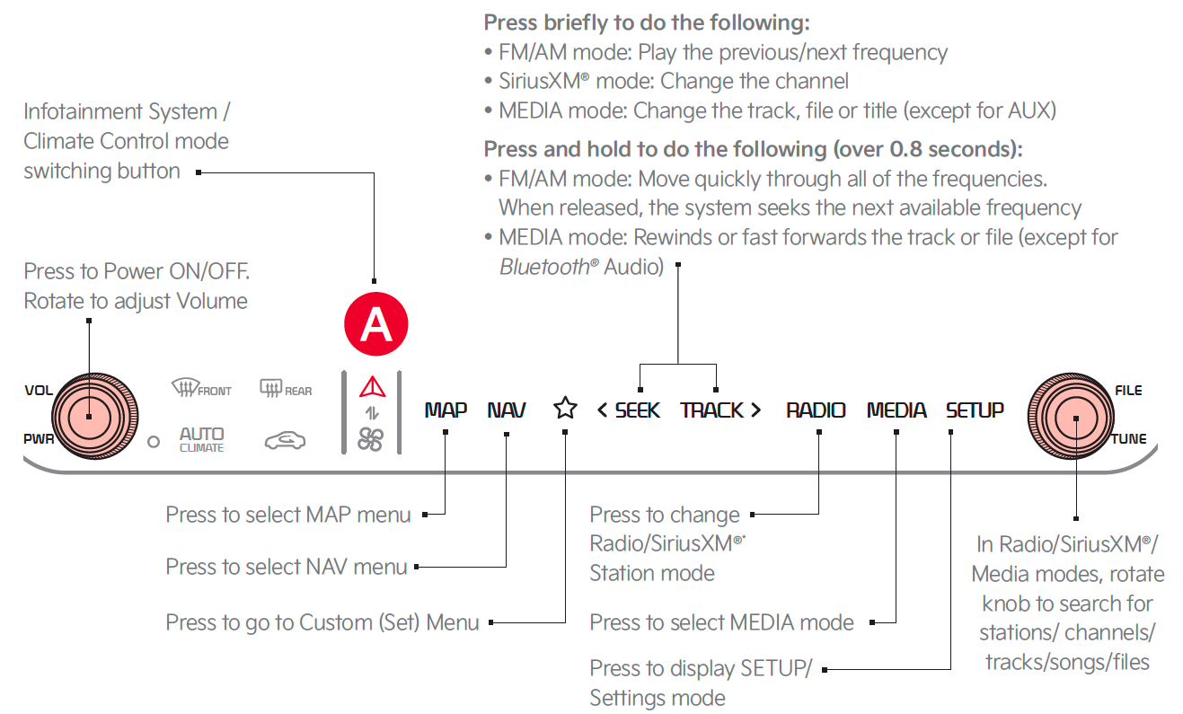 to toggle between Infotainment System and Climate Control Modes. Press and hold the Infotainment/climate control mode switching button
