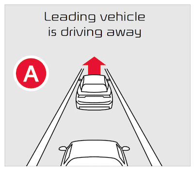 Leading Vehicle Departure Alert is designed to alert the driver if the LVDA system detects the vehicle directly in front start to move or depart from a stop. When LVDA is on, your vehicle is stopped, and LVDA detects that the leading vehicle is driving away, LVDA sounds an alert to let you know you can start driving. If no action is taken after the vehicle in front drives away, then a message