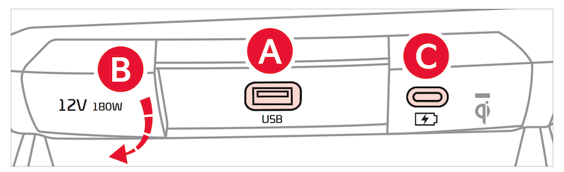 Power Outlets: Use the power outlets for mobile phones and other devices designed to operate on a 12V (180W max) power outlet.