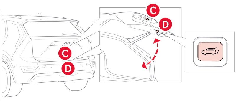 To open the Power Liftgate automatically, press the Rear Hatch Release button