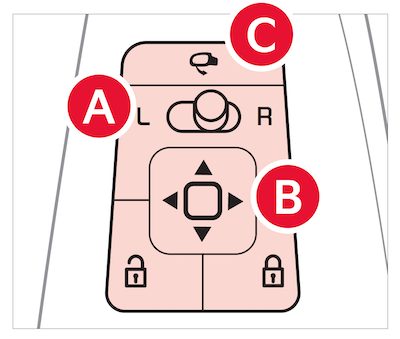 To lock position of mirrors, toggle switch to the neutral (center) position.