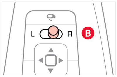 To turn ON the Reverse Parking Aid Function, move switch to either the L or R mirror buttons