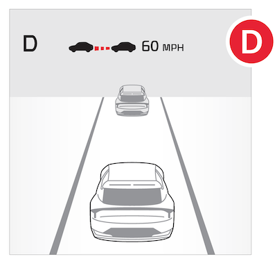 When the vehicle ahead starts to move forward, SCC re-engages. If the vehicle ahead stops for more than three seconds, press the accelerator pedal or press the