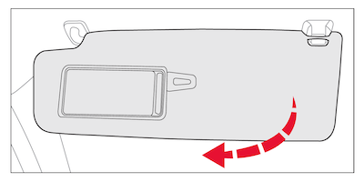Use the Sun Visor to shield direct light through the front or side windows. Move the Sun Visor out and adjust as needed.