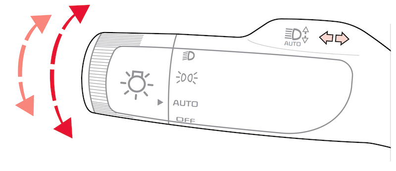 One-Touch Lane Change Signal is activated by briefly pressing the Turn Signal Lever slightly for less than 1 second and then releasing. The lane change signal will blink 3 times.