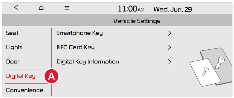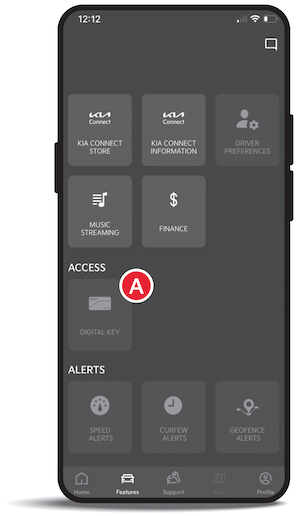 Kia Digital Key 2 Touch requires an eligible Kia Connect subscription and a compatible smart device with an active data plan. Normal cellular service rates may apply when using a smart device. Button configuration may vary. Images are for illustrative purposes only and may not reflect actual feature or operation.