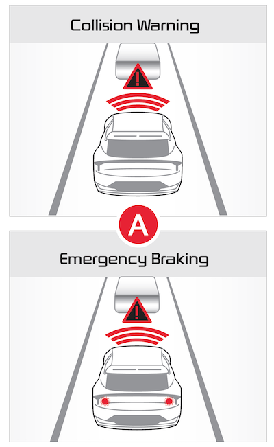 Forward Collision-Avoidance Assist is designed to detect a vehicle, pedestrian, or cyclist ahead on the road and can warn the driver of a possible collision with a warning message on the Instrument Cluster